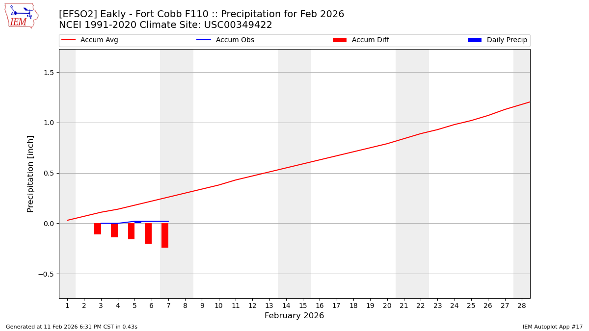 | 01 Precip: M | 02 Precip: M | 03 Precip: 0.00 | 04 Precip: 0.00 | 05 Precip: 0.02 | 06 Precip: 0.00 | 07 Precip: 0.00 |