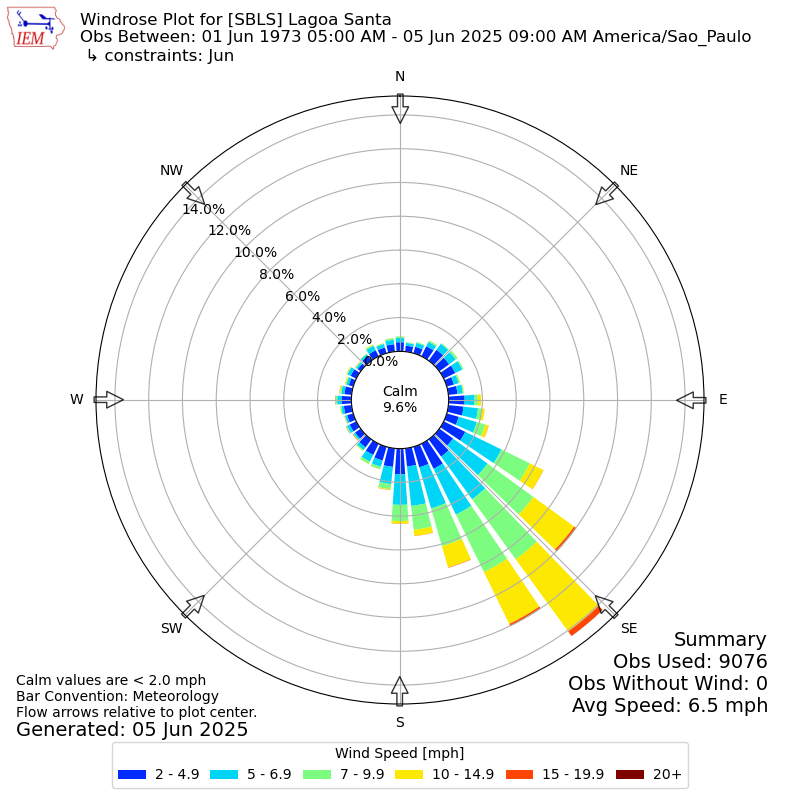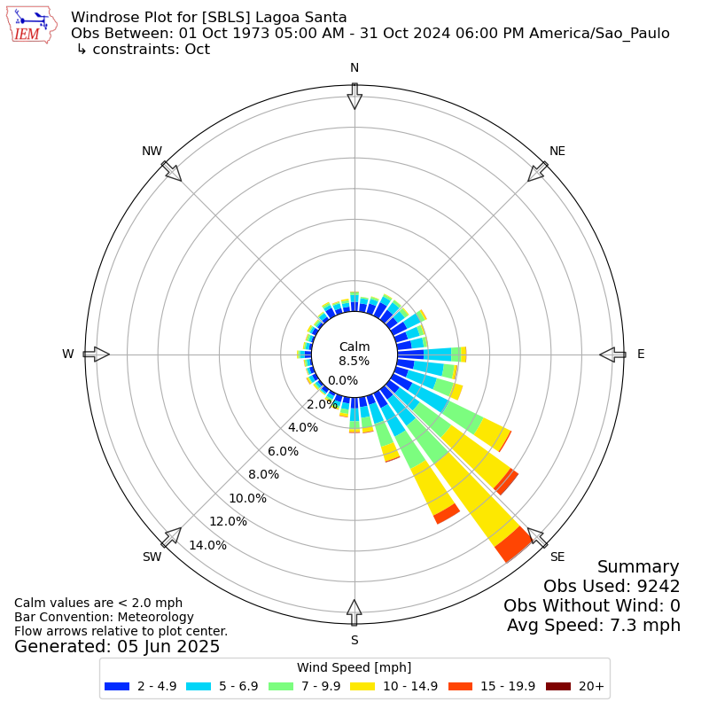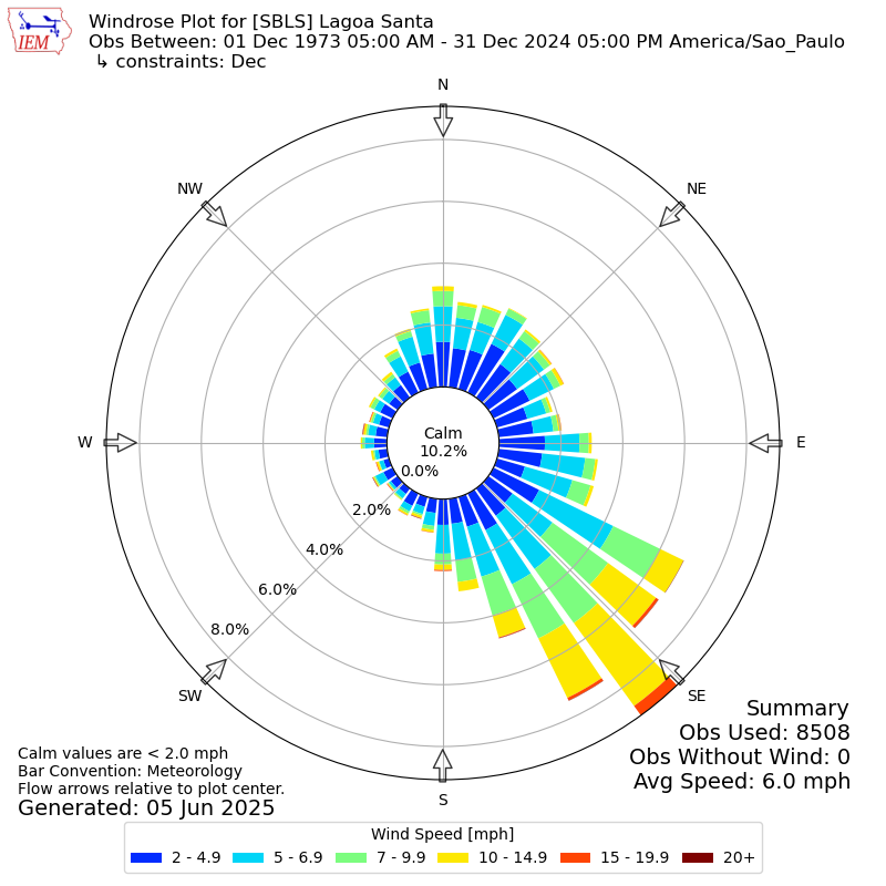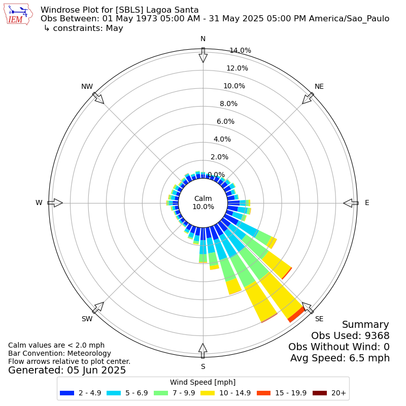 The IEM has generated these wind roses based on our archive. The archive does contain errors and non-representative data, so please use care when using these plots. In general, data from airports is of good quality and representative of the local surrounding area.