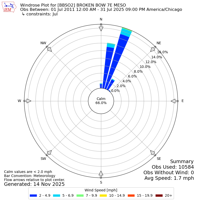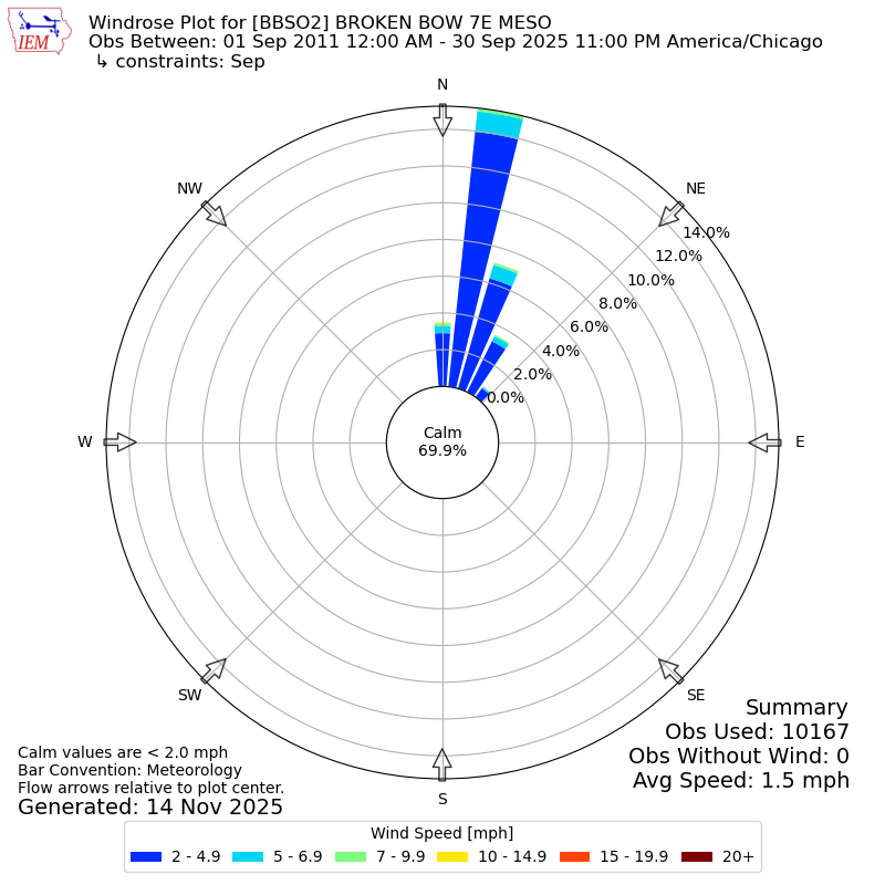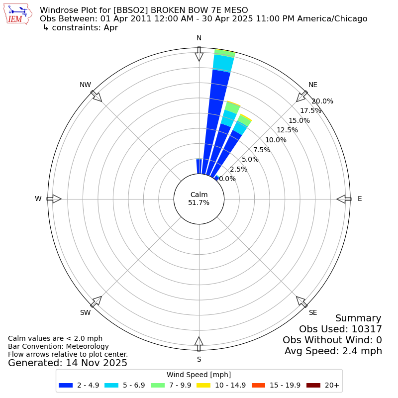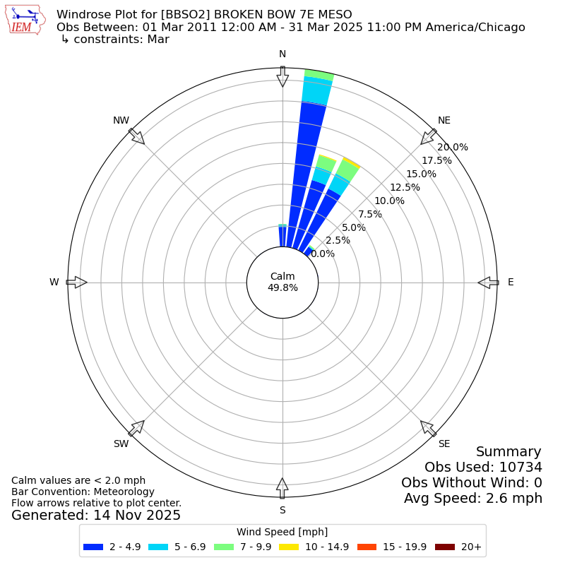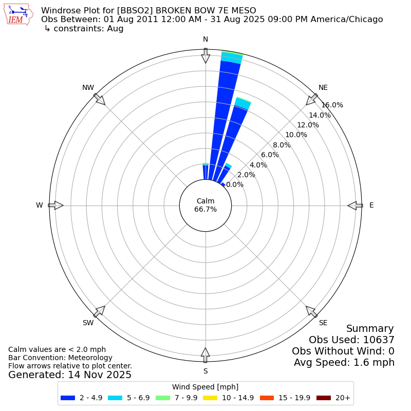 The IEM has generated these wind roses based on our archive. The archive does contain errors and non-representative data, so please use care when using these plots. In general, data from airports is of good quality and representative of the local surrounding area.