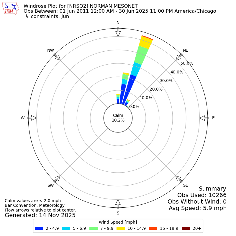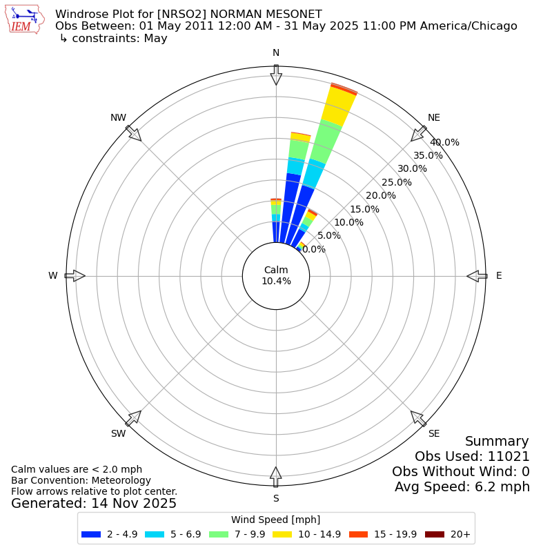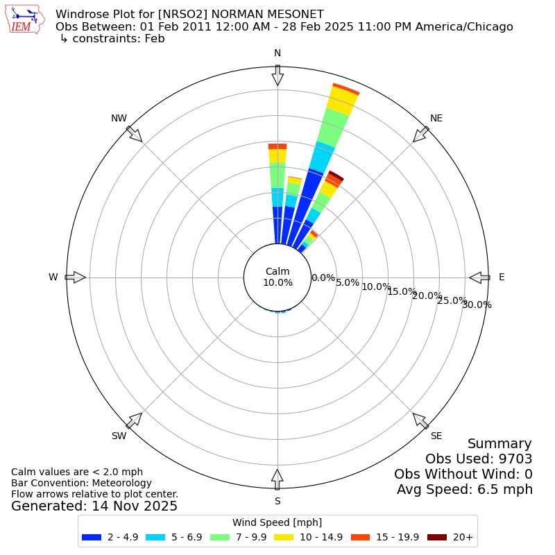 The IEM has generated these wind roses based on our archive. The archive does contain errors and non-representative data, so please use care when using these plots. In general, data from airports is of good quality and representative of the local surrounding area.