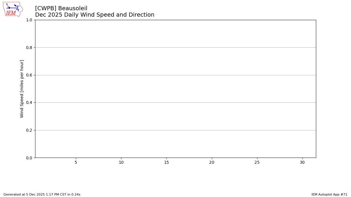 The calendar chart below shows the daily reported climate variables. You can click on a date to display the values for all sites for that day. Time stamps are displayed in the America/Montreal timezone. Wind speeds are in mph and temperatures in Fahrenheit. Values flagged with a (E) are estimated by the IEM.