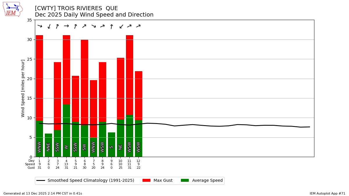 Description: This chart is of the daily average wind speeds.
