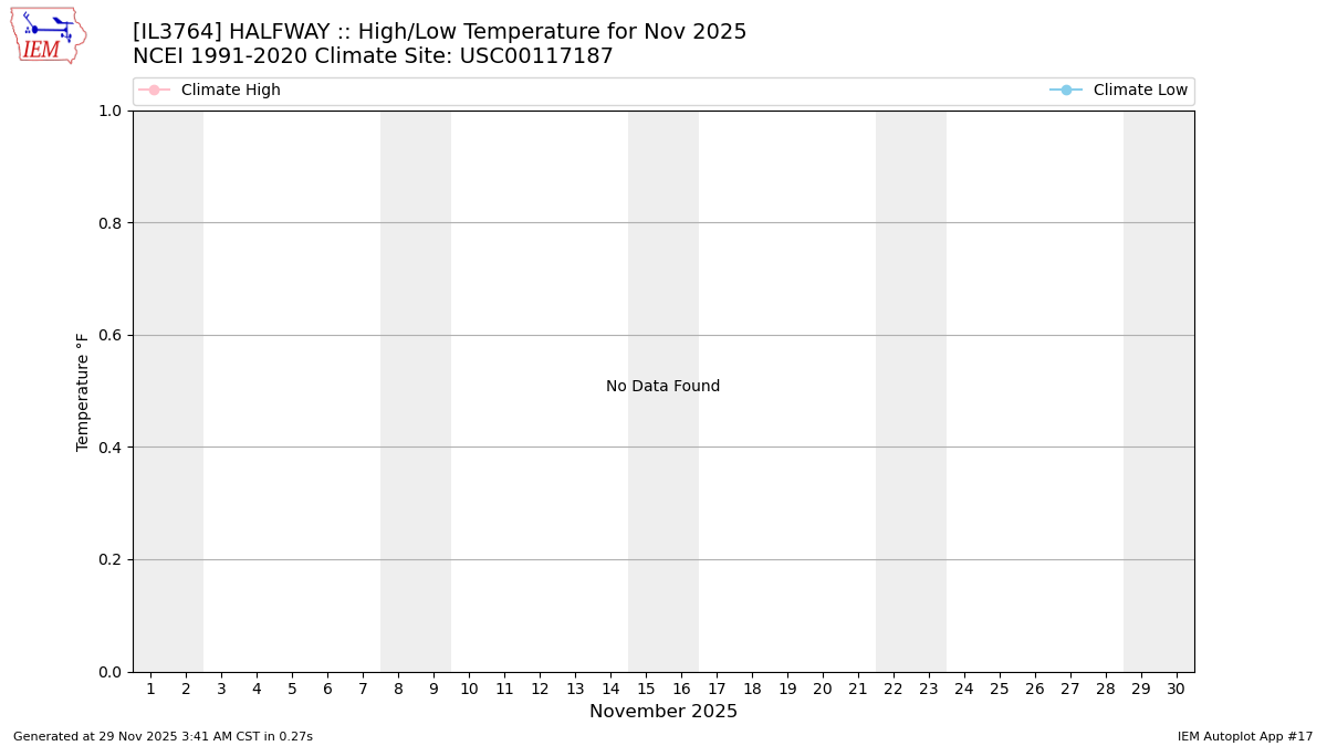 The calendar chart below shows the daily reported climate variables. You can click on a date to display the values for all sites for that day. Time stamps are displayed in the America/Chicago timezone. Wind speeds are in mph and temperatures in Fahrenheit. Values flagged with a (E) are estimated by the IEM.
