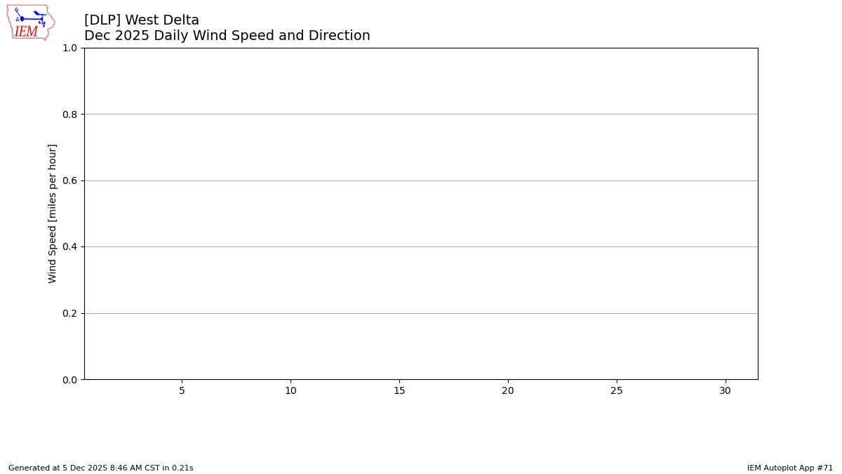 The calendar chart below shows the daily reported climate variables. You can click on a date to display the values for all sites for that day. Time stamps are displayed in the America/Chicago timezone. Wind speeds are in mph and temperatures in Fahrenheit. Values flagged with a (E) are estimated by the IEM.
