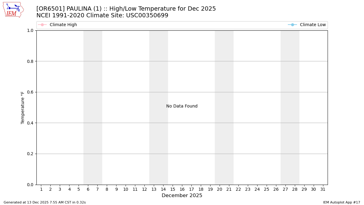 The calendar chart below shows the daily reported climate variables. You can click on a date to display the values for all sites for that day. Time stamps are displayed in the America/Los_Angeles timezone. Wind speeds are in mph and temperatures in Fahrenheit. Values flagged with a (E) are estimated by the IEM.