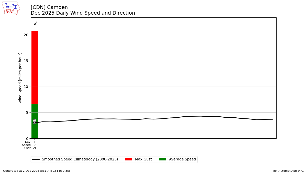 The data presented here provided by IEM API webservice: daily.json. A simple CSV option exists as well.