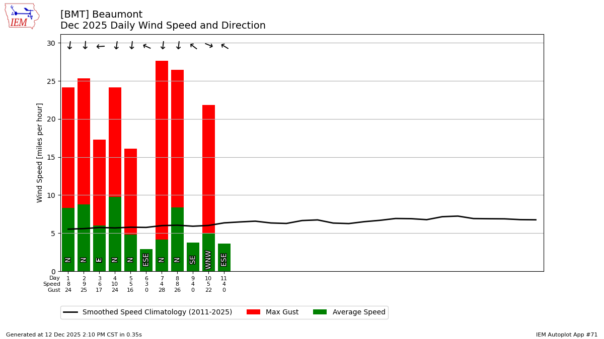 | 30 | 01 High: 44.6 Low: 41 Precip: M Avg Wind: N @ 8.3 Gust: NNW @ 24 (8:55 PM) RH% Min/Max: 77-96 Feel Min/Max: 33 to 44 | 02 High: 52 Low: 37 Precip: M Avg Wind: N @ 8.8 Gust: NNW @ 25 (1:35 AM) RH% Min/Max: 47-92 Feel Min/Max: 29 to 52 | 03 High: 52.7 Low: 33.3 Precip: M Avg Wind: E @ 6.0 Gust: E @ 17 (4:15 PM) RH% Min/Max: 75-95 Feel Min/Max: 30 to 53 | 04 High: 52.7 Low: 42.3 Precip: M Avg Wind: N @ 9.8 Gust: N @ 24 (5:55 PM) RH% Min/Max: 86-96 Feel Min/Max: 36 to 53 | 05 High: 46.8 Low: 40.5 Precip: M Avg Wind: N @ 4.8 Gust: NNW @ 16 (2:35 AM) RH% Min/Max: 78-95 Feel Min/Max: 34 to 46 | 06 High: 61.5 Low: 43.7 Precip: M Avg Wind: ESE @ 2.9 RH% Min/Max: 71-95 Feel Min/Max: 42 to 60 |