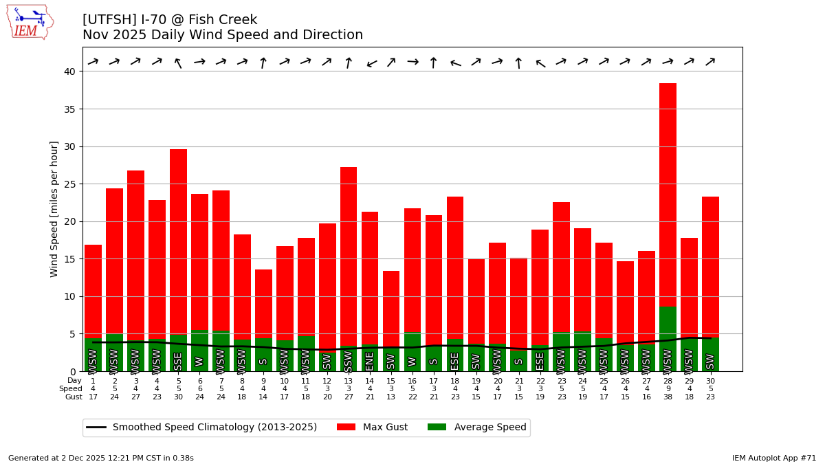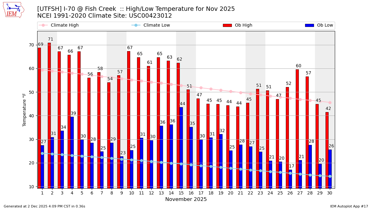 | 30 High: 41.52019 Low: 25.669392 Precip: M Avg Wind: SW @ 4.5 Gust: 23 (11:20 AM) RH% Min/Max: 27-88 Feel Min/Max: 16 to 41 | 01 | 02 | 03 | 04 | 05 | 06 |