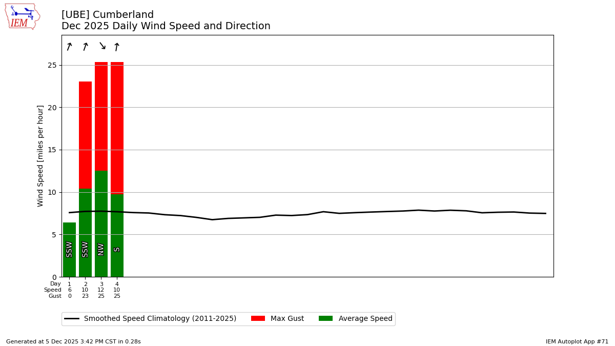 | 30 | 01 High: 19.4 Low: 3.2 Precip: M Avg Wind: SSW @ 6.4 RH% Min/Max: 73-92 Feel Min/Max: -4 to 14 | 02 High: 24.8 Low: 17.6 Precip: M Avg Wind: SSW @ 10.4 Gust: SSW @ 23 (12:55 PM) RH% Min/Max: 73-100 Feel Min/Max: 5 to 17 | 03 High: 24.8 Low: 3.2 Precip: M Avg Wind: NW @ 12.5 Gust: NW @ 25 (6:10 AM) RH% Min/Max: 51-93 Feel Min/Max: -12 to 18 | 04 High: 17.6 Low: -9.4 Precip: M Avg Wind: S @ 9.7 Gust: SSW @ 25 (8:55 PM) RH% Min/Max: 52-92 Feel Min/Max: -24 to 2 | 05 High: 26.6 Low: 17.6 Precip: M RH% Min/Max: 73-93 Feel Min/Max: 5 to 27 | 06 Precip: M |